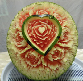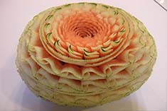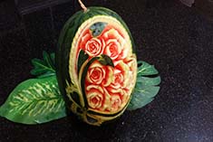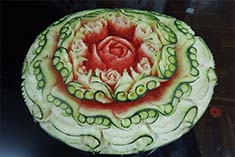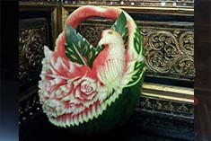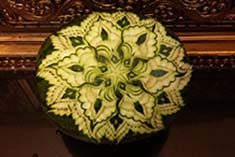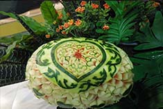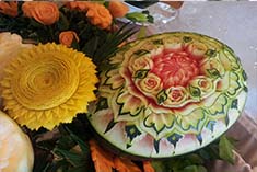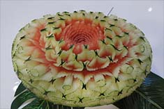 フルーツカービング教室/ソープカービング/タイの伝統的な柄・草花を果物や現代風アレンジ柄を丁寧に作品に仕立て上げます。食卓やパーティを豊かに演出普段の食に飾り付けることでパーティ料理に変身します。
