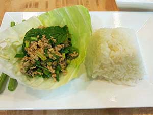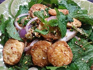 | ラープムー タイ北部の定番料理で豚ミンチの和え物。辛いすっぱい味をキャベツや生野菜と一緒に。胃腸の運動を活発にする健康食品です。 |