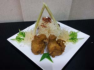カイトートタクライ ハーブのレモングラスの香りの唐揚げです。 タイの南部地方の料理で血行促進カリカリの 歯ごたえでおかずによしおつまみによしの一 品です。 |